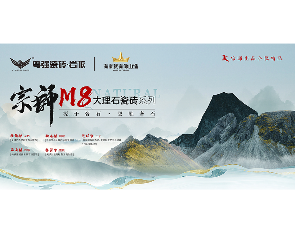 粵強瓷磚·巖板始終堅持以"傳承品質(zhì)生活的質(zhì)感瓷磚"為品牌定位,以獨特的審美觀和發(fā)掘力,不斷研發(fā)全新產(chǎn)品,將經(jīng)典文化融入現(xiàn)代工藝技術(shù),讓大家擁有富有藝術(shù)的質(zhì)感生活空間。